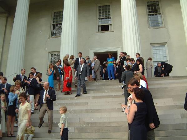The crowd waits on the steps of the chapel at Transylvania U.